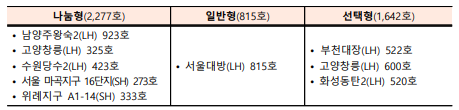 추정분양가는 나눔형은 서울 위례는 5~6억원대, 이외 지구는 전용면적 기준 60㎡ 이하는 3억원대, 74~84㎡는 4~5억원대입니다. 일반형은 서울 대방 59㎡는 7억원대, 84㎡는 10억원대로 산출되었습니다.