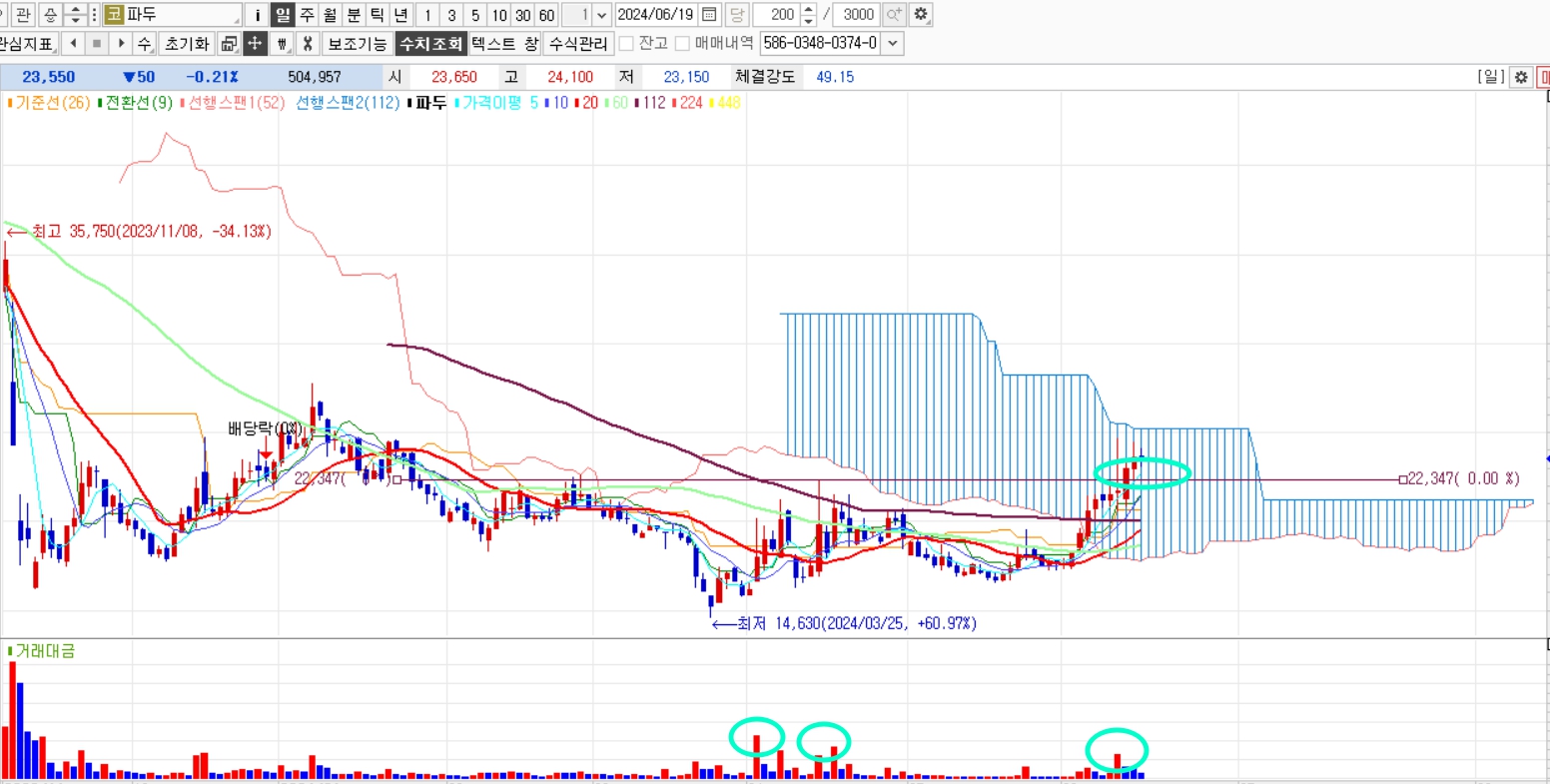 손절가격 : 22,200(주봉, 일봉, 분봉상 강력한 지지라인)